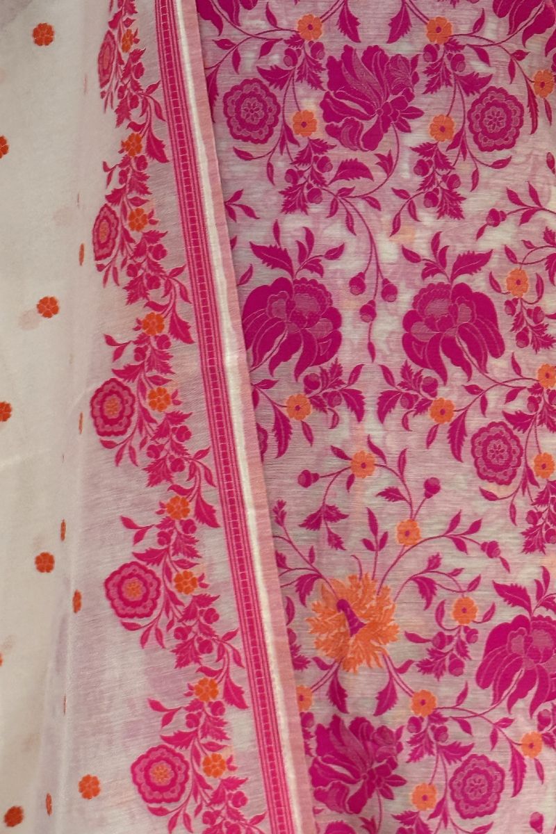 Magenta on Ivory Unstitched Cotton Silk Banarasi Suit (3 Pcs)