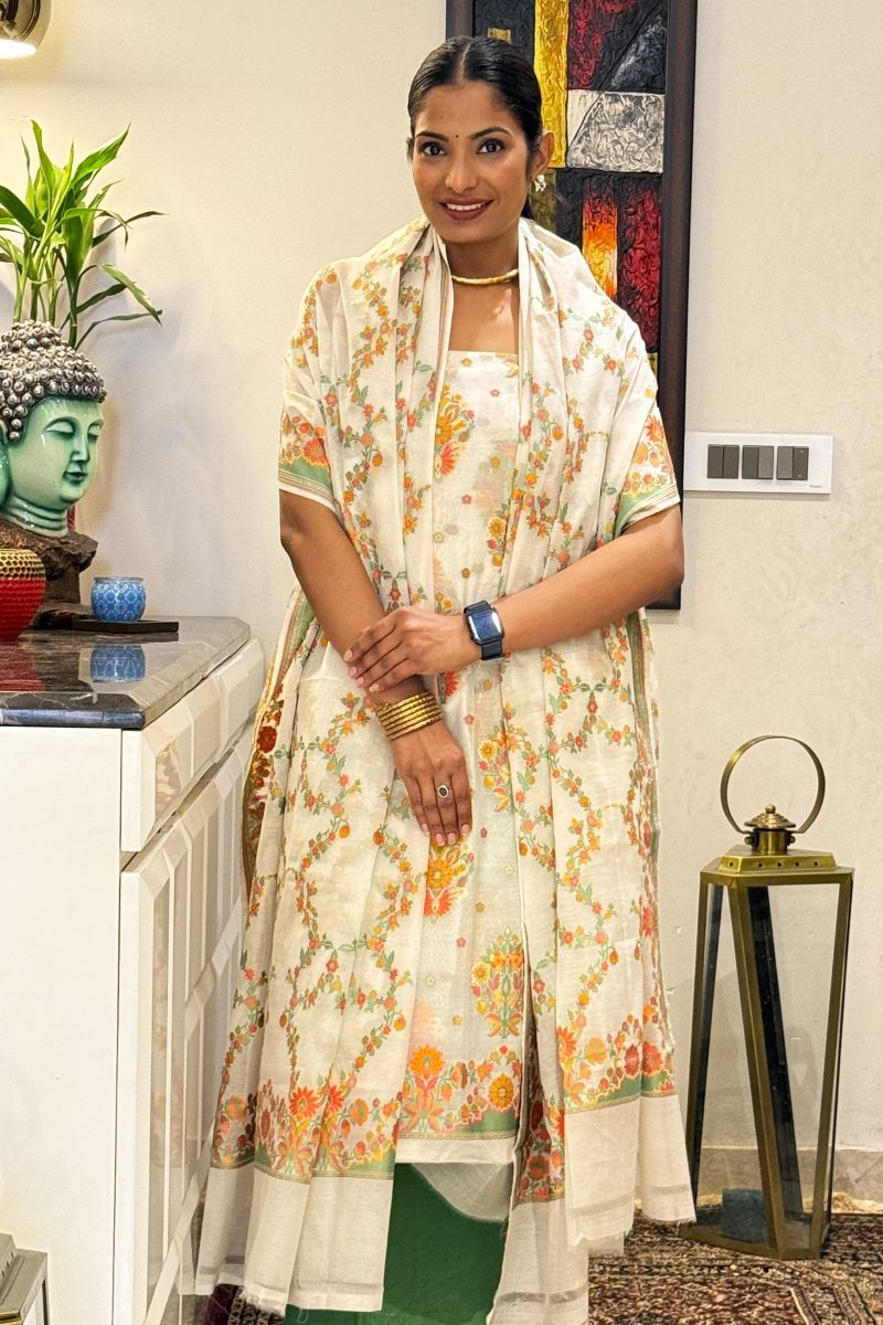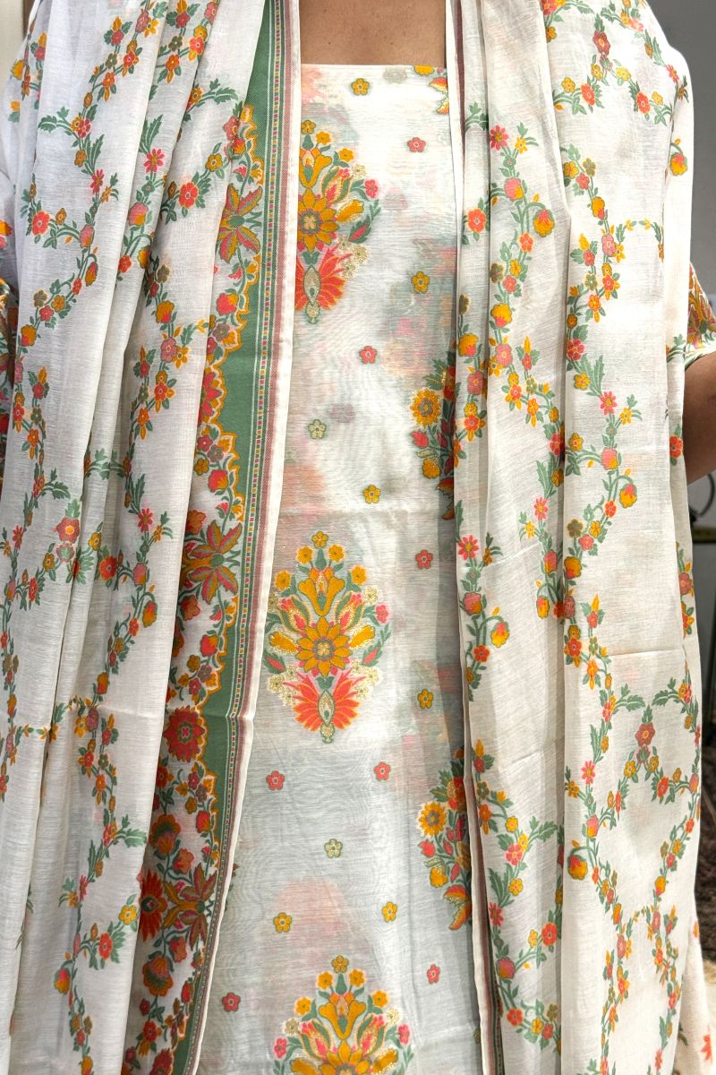 Dusk on Ivory Unstitched Cotton Silk Banarasi Suit (3 Pcs)